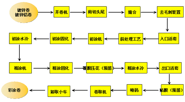 彩色涂層機組工藝流程圖 ▼