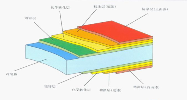彩色涂層鋼板典型涂層結(jié)構(gòu) ▼